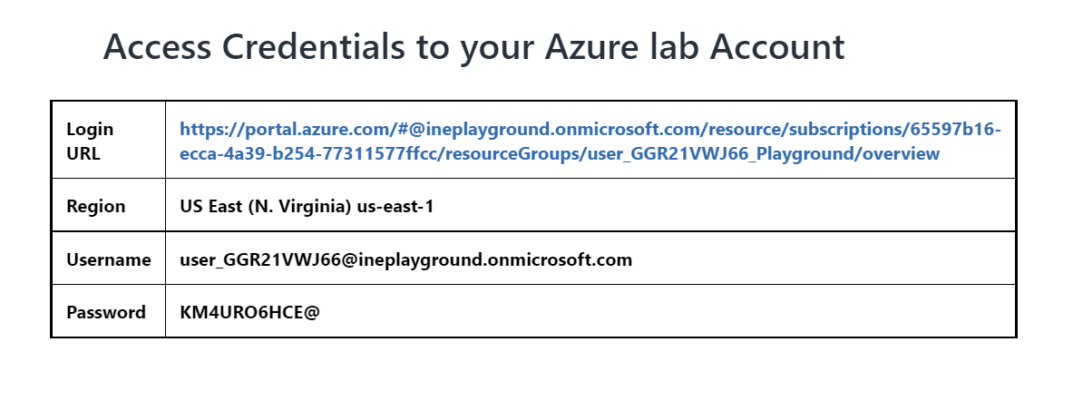 Click on the login URL and enter the given credentials to log in to the Azure portal.