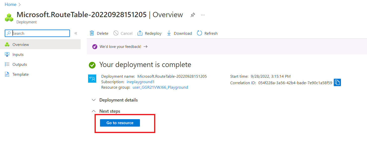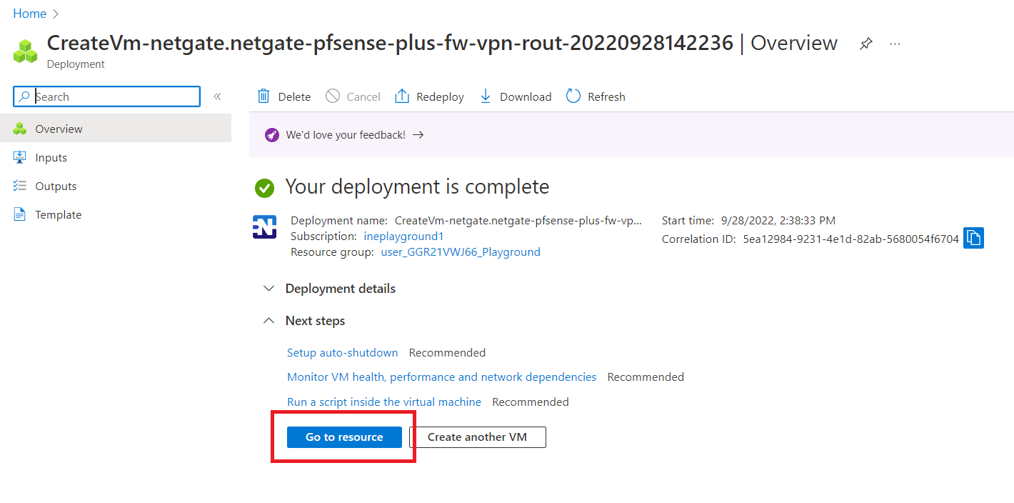 Once the deployment is complete, click on "Go to resource".