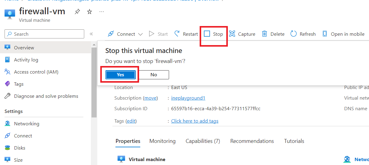 Stop the firewall-vm and click on "yes" when prompted.