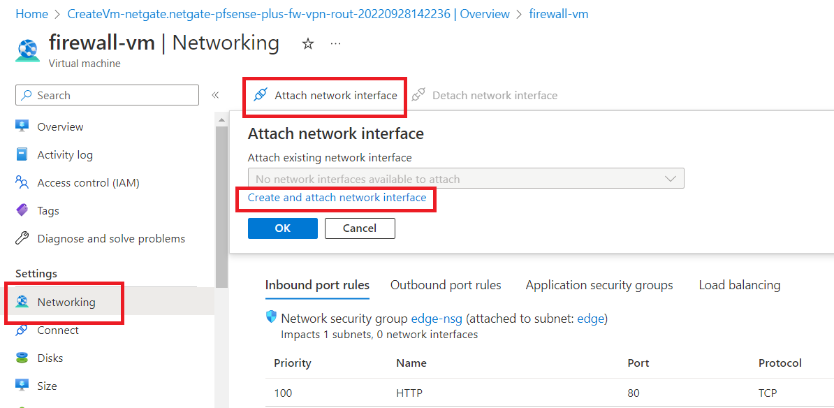 Now, click on "create and attach network interface".