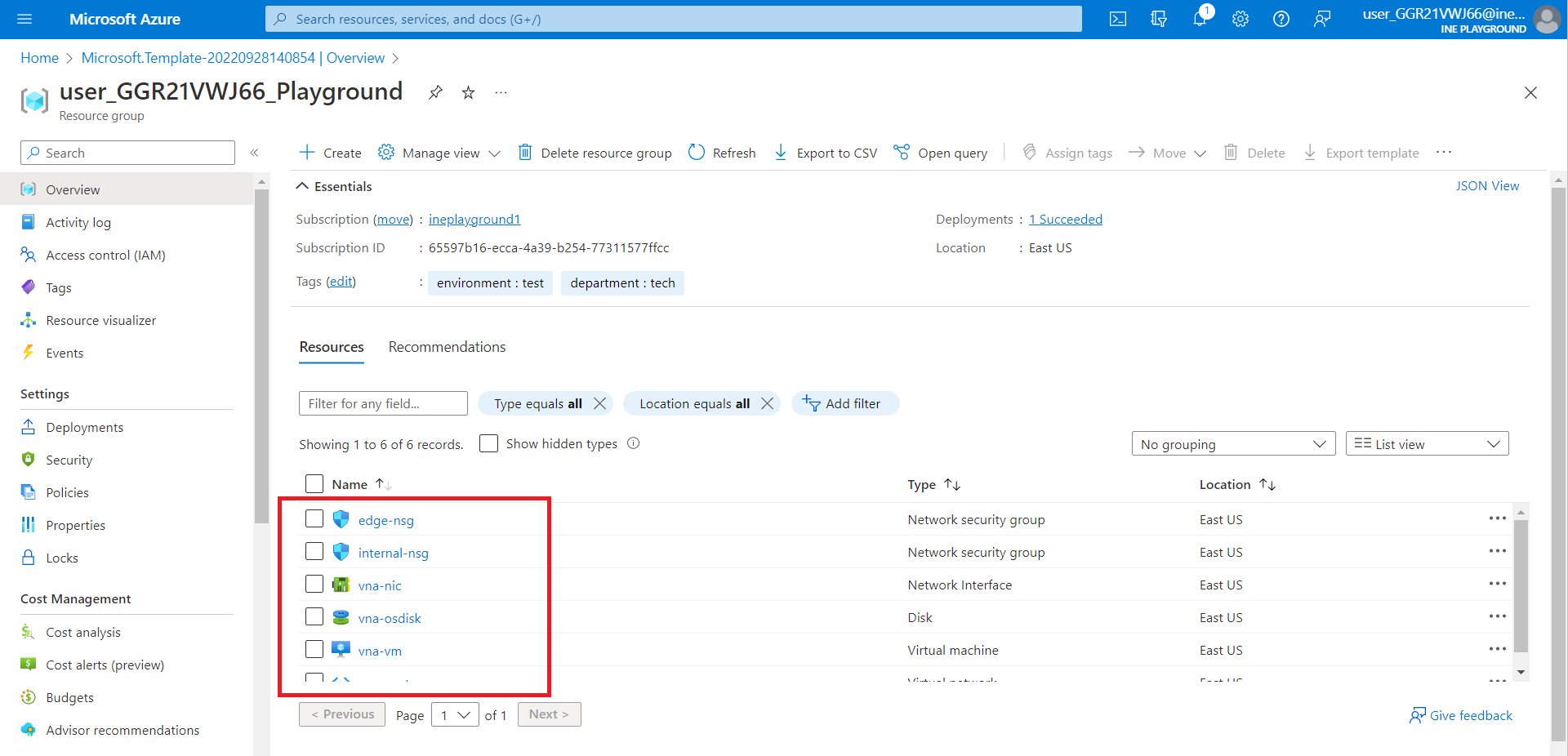 After logging in to the portal using the credentials. You will see a resource group with some pre-defined resources created for the lab, you will be using this resource group throughout the lab.