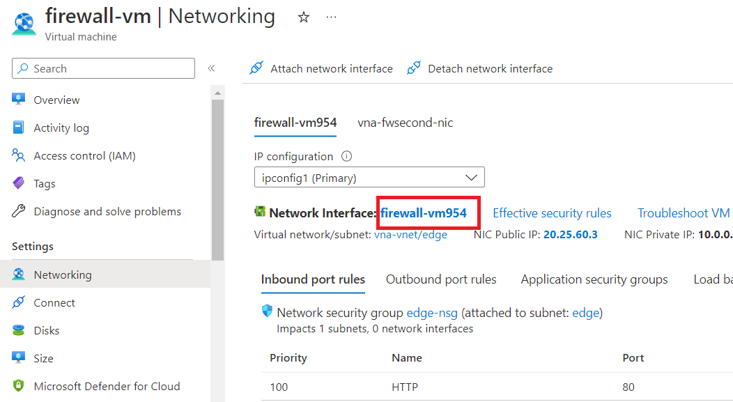 Now, navigate back and select "vna-fwsecond-nic".