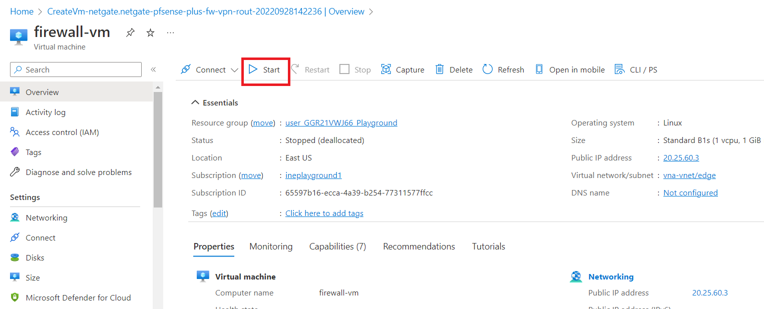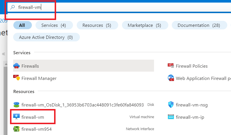 Search "firewall-vm" in the search box and click on it.