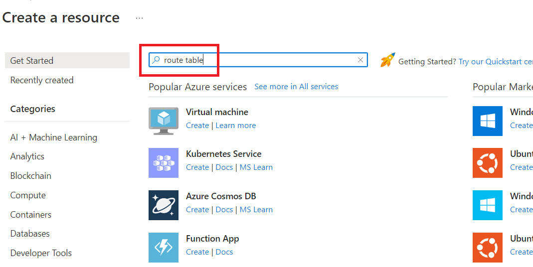 Type "route table" in the search box and hit the enter key.