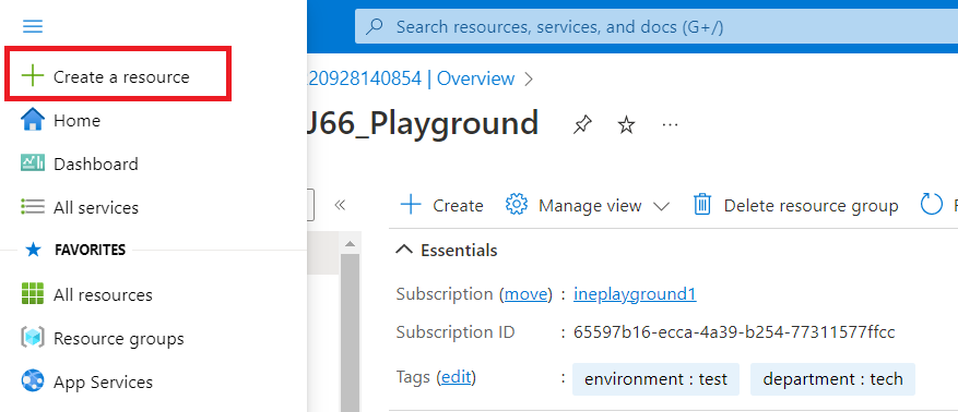 Click on the hamburger icon and click on "Create a resource".