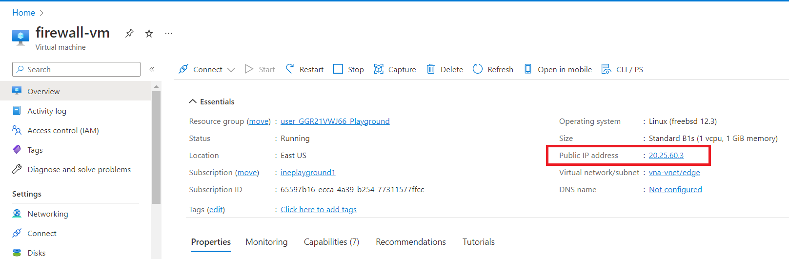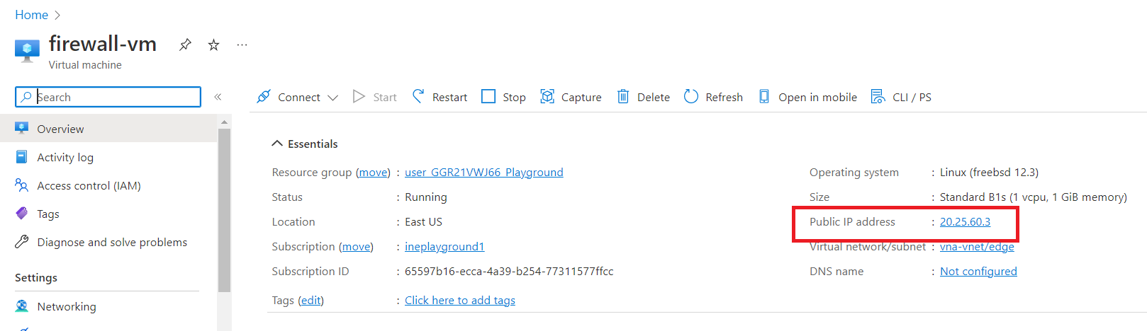 Copy the Public IP address (of firewall-vm).