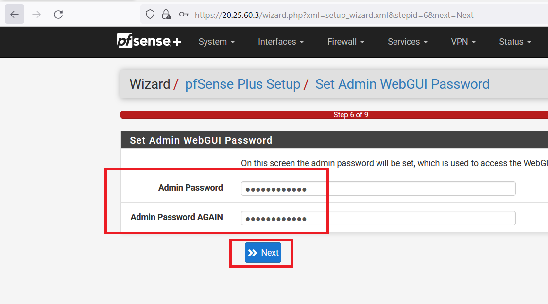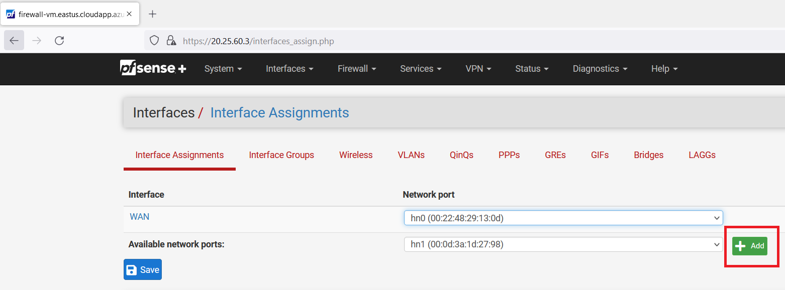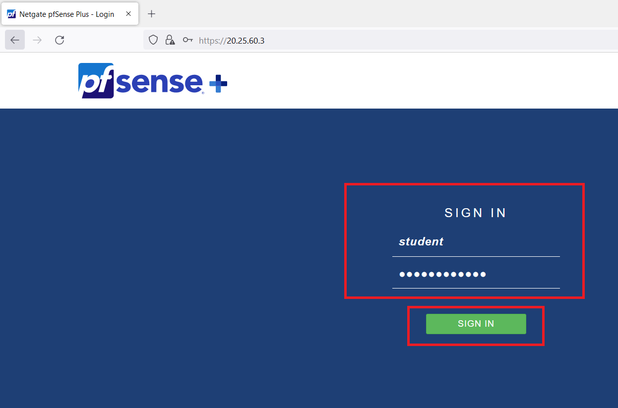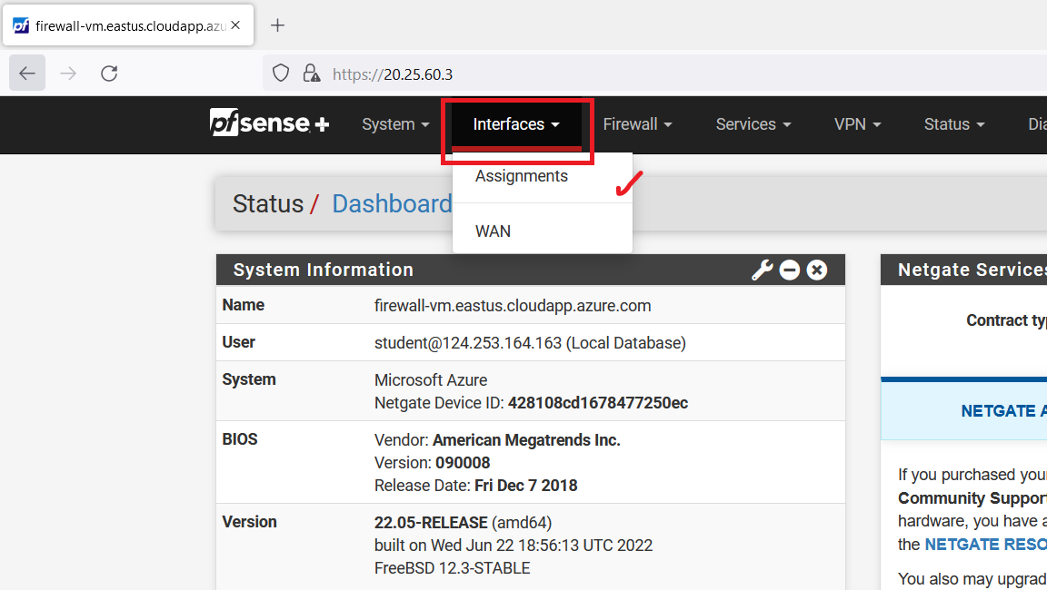 Open a web browser (use firefox) and search "https://< firewall-vm Public IP Address >"