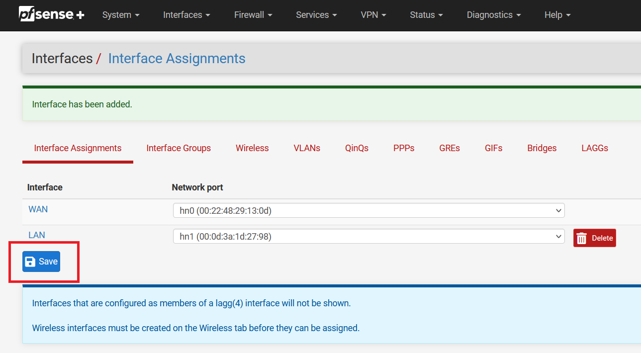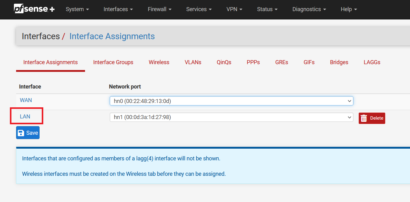 Select "Interfaces" from the navigation bar and click on "Assignments".