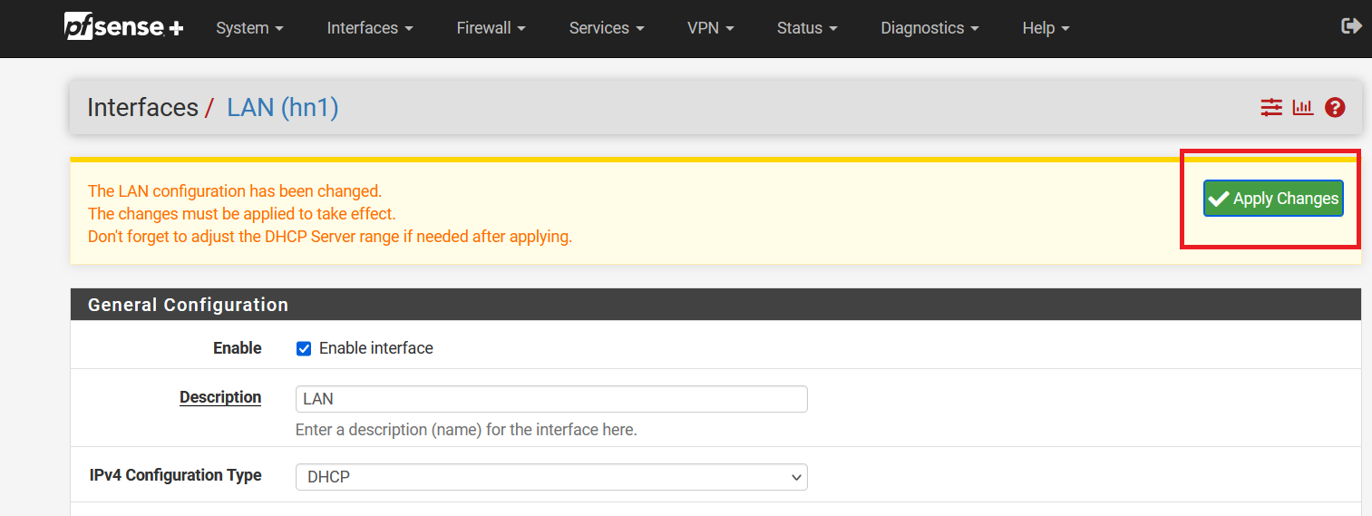 Click on "Apply Changes".