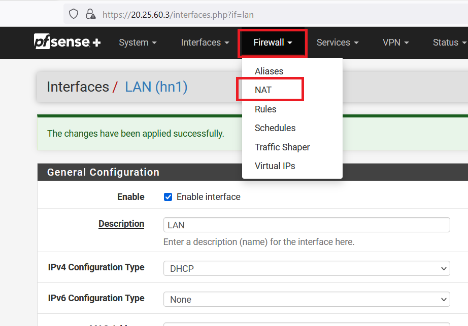 Now, form navigation bar go to "Firewall" and select "NAT".