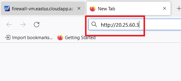 Open any browser and search for "http://< Public IP address of firewall-vm >" e.g.,
