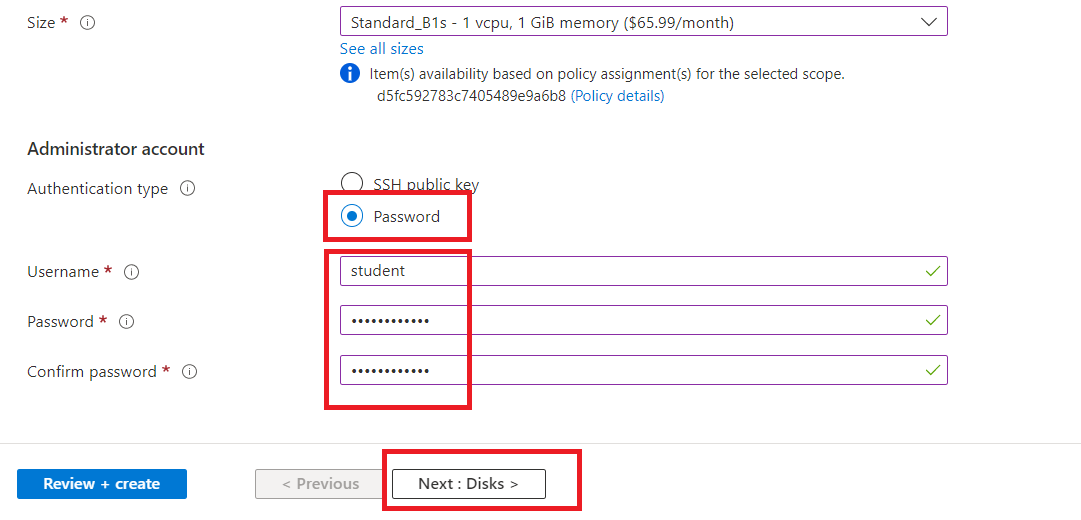 Select "Password" as Authentication type. And give username as "student" and set the password as "MyP@sswrd123".