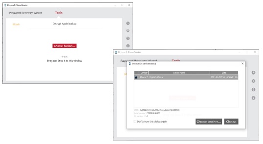To use Elcomsoft Phone Breaker (EPB), select "Choose backup." Navigate to the backup file you want to crack. The option includes:
