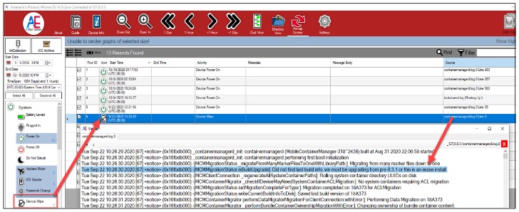 As discussed in section 3, ArtEx is an open-source tool that is great for triage and forensic validation. In this example, we used ArtEx to validate our predictions on when an iPhone X running iOS 14.2 was wiped. As the slide shows, we select Device Wipe and are presented with a datetime for the wiping activity. Additionally, we can click on the file under Source and examine the native data. On the highlighted line, you will see the magic words, �this is an erase install.� A very important aspect of this file that was detected by Heather Mahalik and Ian Whiffin, as stated in their blog, is that this file stores all data in Pacific time.1�It must be converted manually to the local time for the user. This log shows the time of 13:26:30 but the device was wiped at 16:26:30 since the user lives in Eastern time.