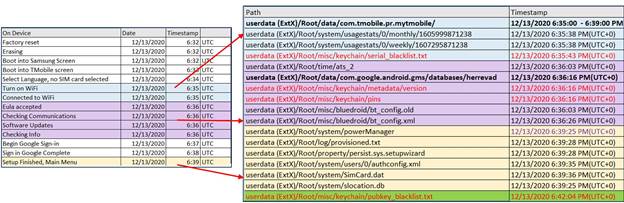 Lastly, don�t overlook manufacturer or service provider artifacts, like in this case, many of the service provider artifacts (T-Mobile) correlate with the time of reboot after factory reset.