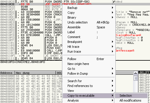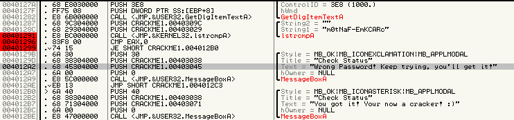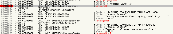 fijamos tambi�n en otra cadena que nos dice You got it! Your now a cracker! En la direcci�n 004012B7
