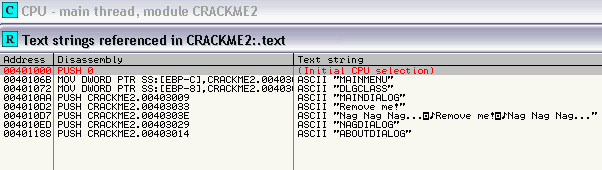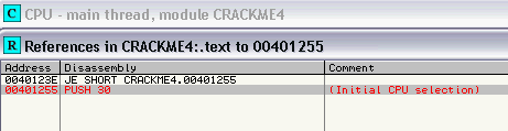 el crackme en el Olly y con click derecho Search for � All referenced text