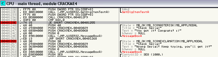 o vemos el CALL donde debemos poner el Breakpoint para cazar el serial bueno.