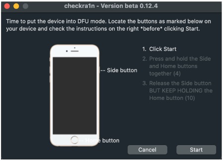 Once you press start, the device will enter recovery mode. From there, you will be promoted to enter DFU (Device Firmware Upgrade) mode.