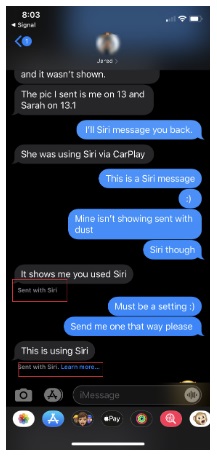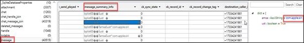 If the user leverages Siri to send an SMS message in iOS 13, there will be a� BLOB in the column �message_summary_info� that contains �com.apple.siri� which means Siri was leveraged to send the message as shown in fine print on your iPhone message screen.