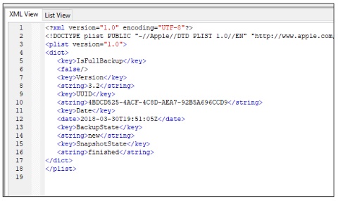 The status.plist is one of the files that tells the truth about the backup completion time if Apple iTunes was used. If the Microsoft app was used, the info.plist will store the most accurate time of the backup and the status.plist may not be updated. When the status.plist is available, the file will include the completion time of the last successful backup. If the backup fails, this file will not be updated.� This is the first plist that is created and written to during an iOS backup extraction.