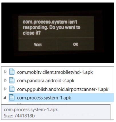 This error and com.process.system turn out to be associated with TRacer, a mobile spyware tool sold by KillerMobile.