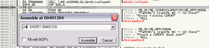 cambiar en memoria el valor del salto JE por JNE y probar si cambi�ndolo salta