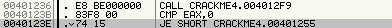 desplazamos a JE 0040123E encontramos encima el CALL 00401236 Y el CMP 0040123B