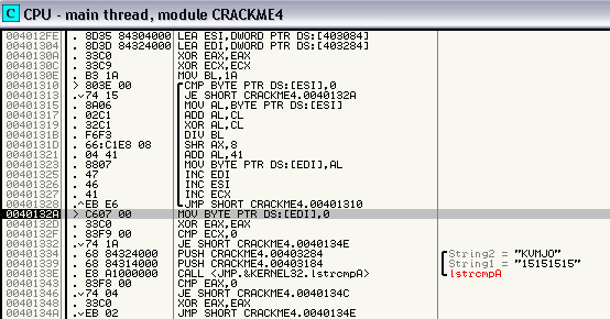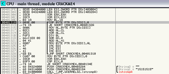 examinando con F8 y llegamos a esta parte del c�digo (00401310) donde el